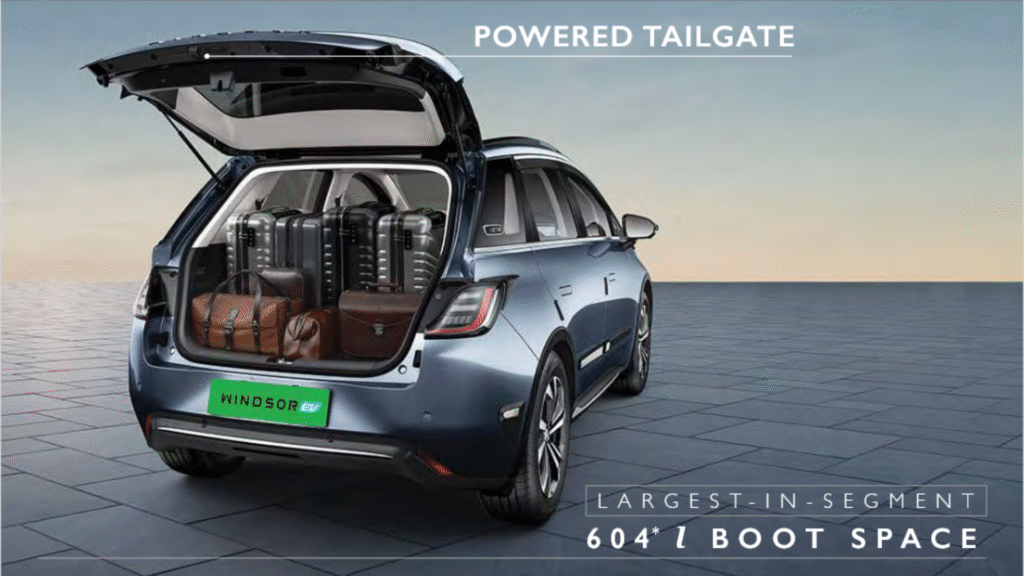 What sets the Windsor apart is its space and features package. Because it is a “born-EV” design (as opposed to a converted ICE model), it makes very efficient use of cabin space – often more than some similarly priced rivals. Its 2.7 m wheelbase is longer than the Nexon’s, for example, giving extra legroom. The first‑of‑segment panoramic glass roof, large infotainment screen, and higher-end tech give it an edge in comfort and gadgetry. In short, the Windsor EV aims to offer a bit more room and equipment for the price. Competitors may beat it on range or performance (the 52.9 kWh Windsor Pro’s 449 km is good but not class-leading), but none match its combination of features, rear-seat comfort and pricing exactly.
